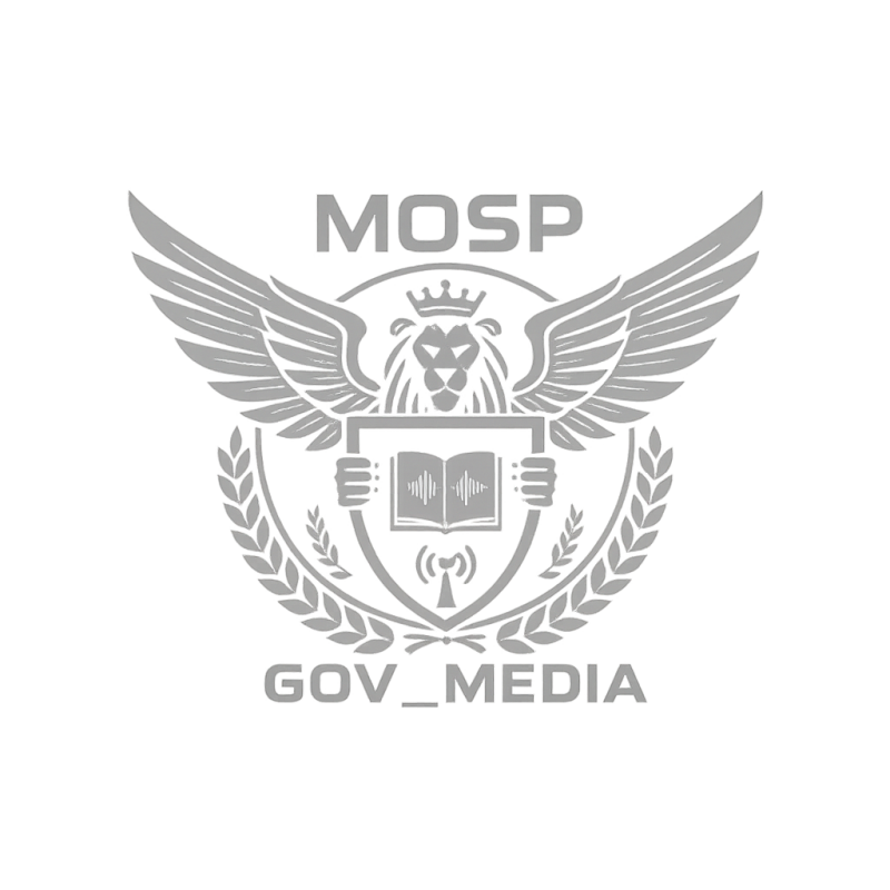 Représentant un lion couronné aux ailes déployées, gardien du savoir et de la vérité, le logo MOSP_GOV_MEDIA unit les principes d’autorité, de communication et de modernité.